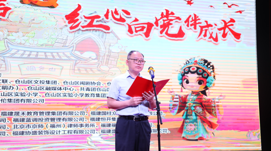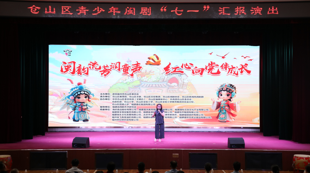闽剧,作为国家级非物质文化遗产,是福建地区极具代表性的传统戏曲剧种,是闽地文化的瑰宝。为推动闽剧艺术的薪火相传,值此“七一”之际,仓山区政协在仓山小学礼堂特举办青少年闽剧汇报演出,将非遗传承与红色教育深度融合,让童声演绎的闽剧雅音,唤醒对传统的敬畏与热爱,同时借戏曲舞台播撒红色火种,引导青少年在艺术熏陶中铭记党恩、砥砺信仰,让红色基因随闽韵声声,扎根成长之路。