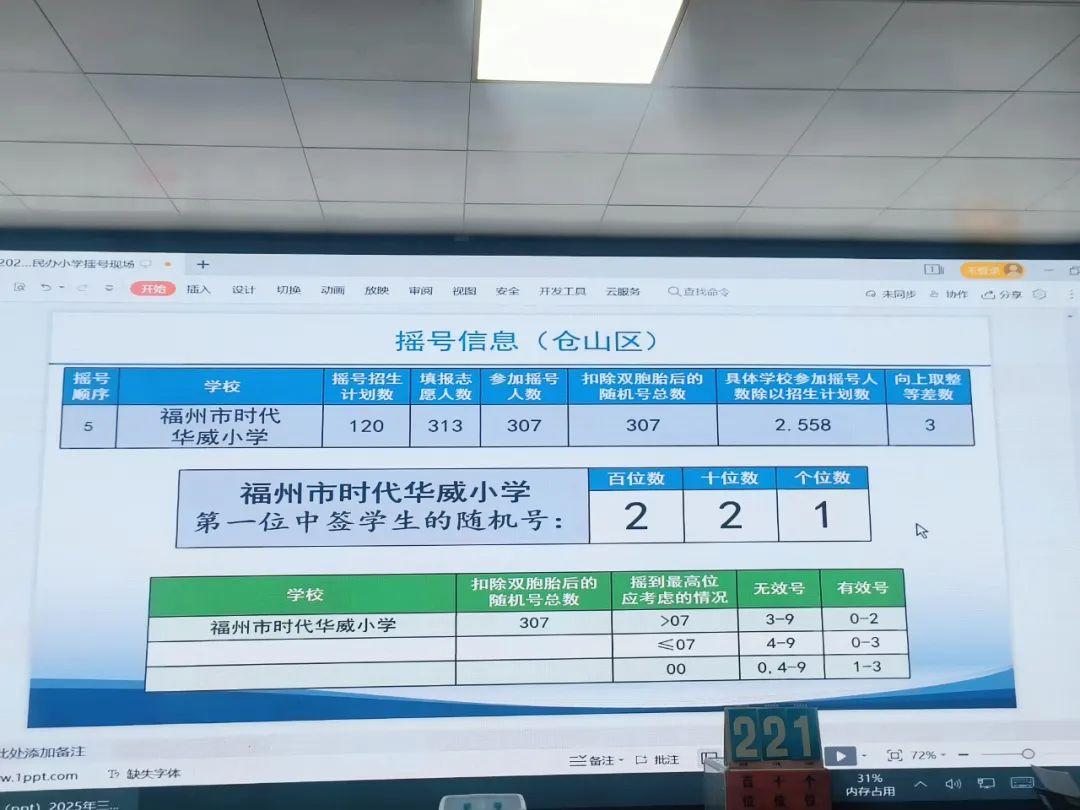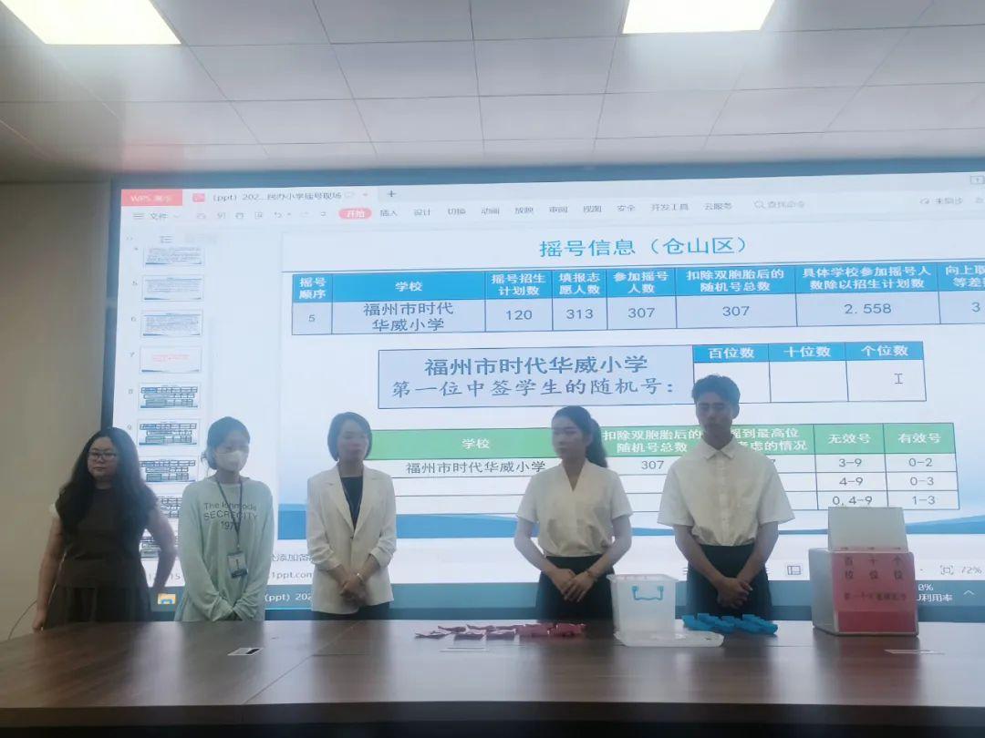 本次仓山区参与现场摇号的学校有福州市仓山区金山云开小学、福州市仓山区新蕾小学、福州市仓山区里仁学校(小学部)、福州市时代华威小学、福州华南实验小学。