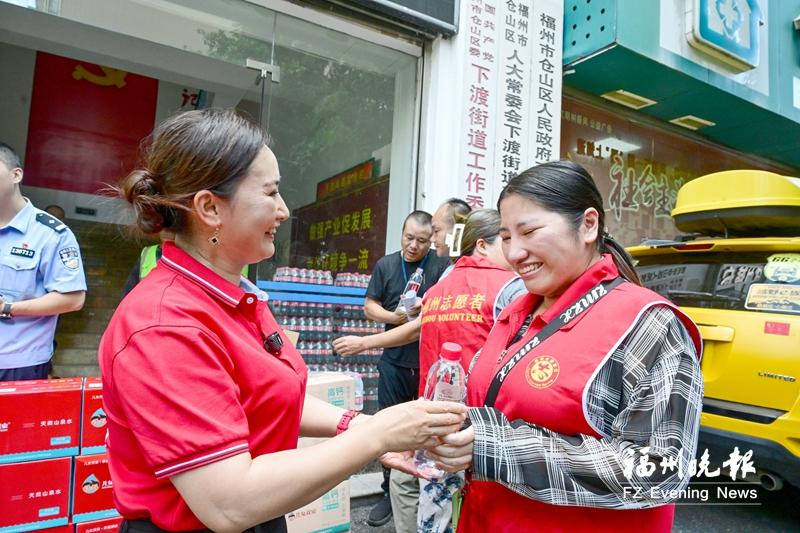 “这些一线工作者用汗水换来城市的美丽和安宁,为他们送上一瓶水,说一声‘辛苦了’,是本土企业应尽的社会责任。”福州市儿女双泉健康科技有限公司相关负责人表示。(记者 王光慧/文 石美祥/摄)