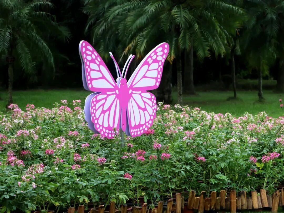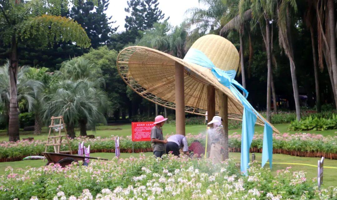 本次花展以“榕荫蝶舞 欢度国庆”为主题,巧妙融合国庆与中秋双节意蕴,传递绿色和谐的生态理念。精选醉蝶花、三角梅、比利时杜鹃等10余种、3万余株花卉,配合“草帽”布景,布展面积近2000平方米。主展区位于棕榈园,以醉蝶花为主角塑造“古榕”苍劲之姿,配以六只翩跹“彩蝶”,象征福“叠”(蝶)而至、繁“荣”(榕)昌盛的美好寓意。