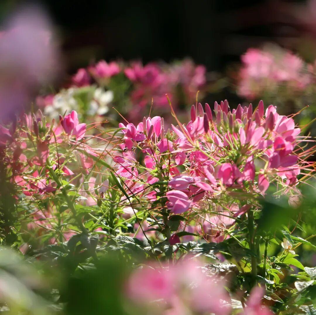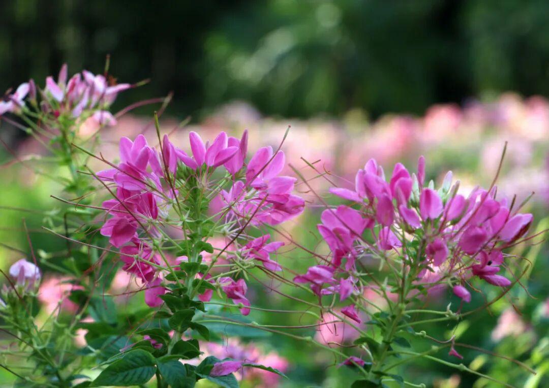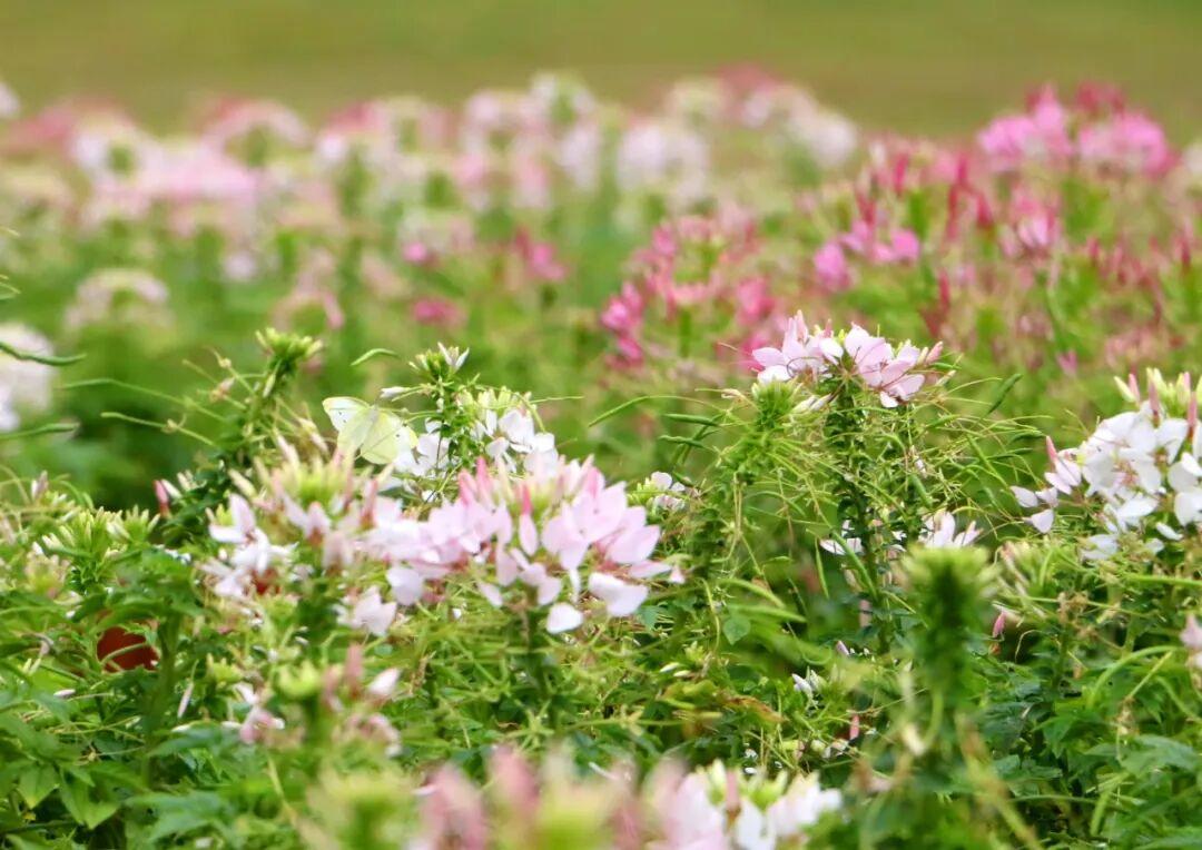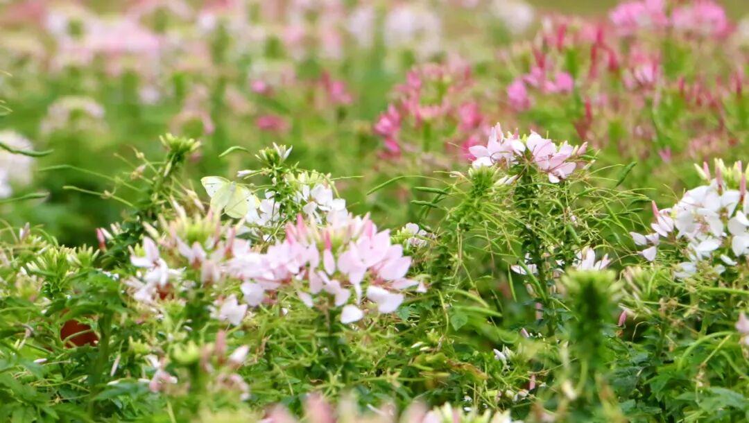 醉蝶花(学名:Tarenaya hassleriana),白花菜科醉蝶花属一年生草本,又名凤蝶草、醉蝴蝶、紫龙须等。掌状复叶,小叶5-7,椭圆状披针形或倒披针形;总状花序,苞片叶状;花瓣呈红、淡红或白色,瓣片倒卵状匙形;果长5-6.5厘米,密布网状纹;种子褐色,径约2毫米,近平滑;花果期3–10月。其花形别致,盛开时雄蕊细长伸出,宛若蝴蝶飞舞,故名“醉蝶”。原产热带美洲,我国多地均有栽植,是优良的观赏和蜜源植物。