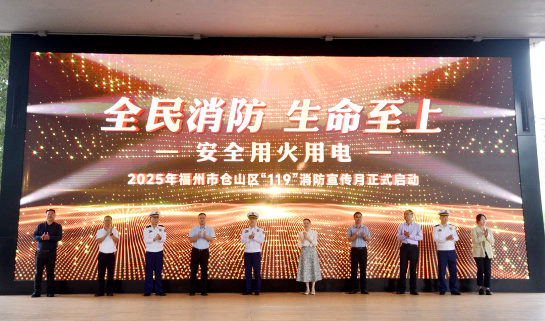 15时50分,全场目光聚焦舞台中央。“5、4、3、2、1——启动!”随着整齐划一的倒计时声响彻会场,领导嘉宾共同按下虚拟启动按钮,LED大屏瞬间点亮,“全民消防、生命至上——安全用火用电”的主题跃然眼前,伴随着动态呈现的仓山地标与消防元素,正式拉开消防宣传月序幕。