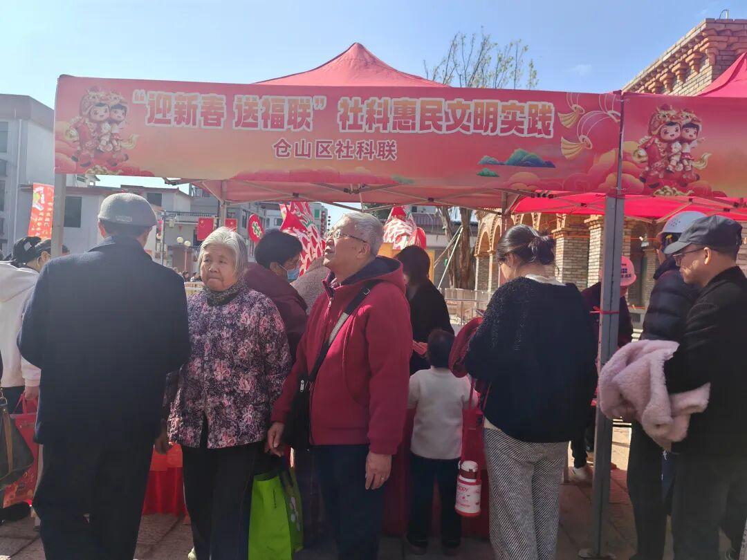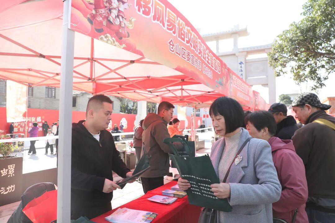 与非遗集市相得益彰的,是充满正能量的文明实践集市。由仓山区委宣传部(文明办)等单位带来的移风易俗、“迎新春 送福联”等多个主题宣传摊位整齐排列,将文明理念融入节日生活,让群众在领取福联等宣传品的同时,学习实用的知识,引导群众树立文明过节的新风尚。