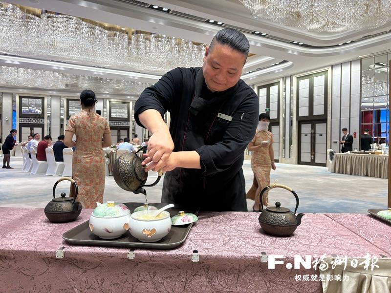 主厨现场制作鸡汤汆海蚌。记者 蒋雅琛 摄