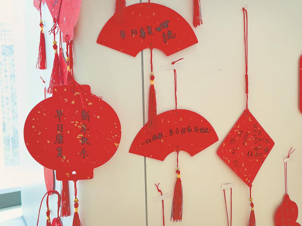 省儿童医院血液科患儿家庭在医务社工带领下制作的新年祝福挂件。