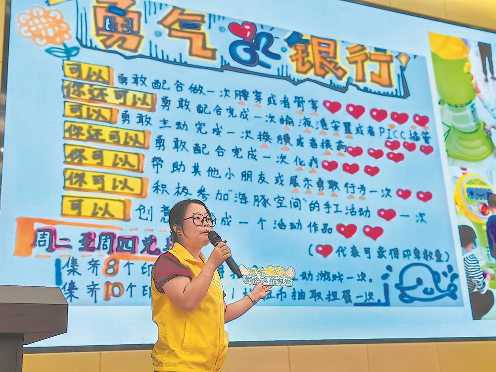 去年5月,草莓姐姐在省儿童医院的医患交流活动上介绍勇气扭蛋项目。