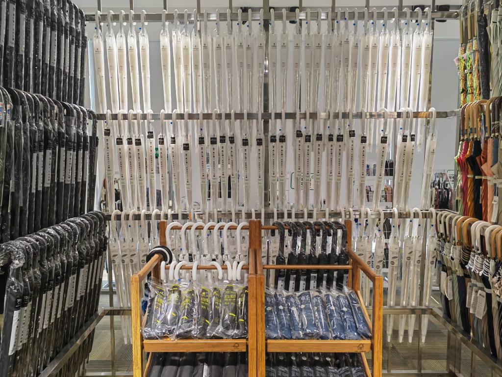 每批次伞具进入市场前,都要经历“魔鬼考验”般的闯关:2分钟的淋雨检测、300次的开合疲劳试验、500次的弹簧测试,还有甲醛、重金属等数个指标的严格检测。