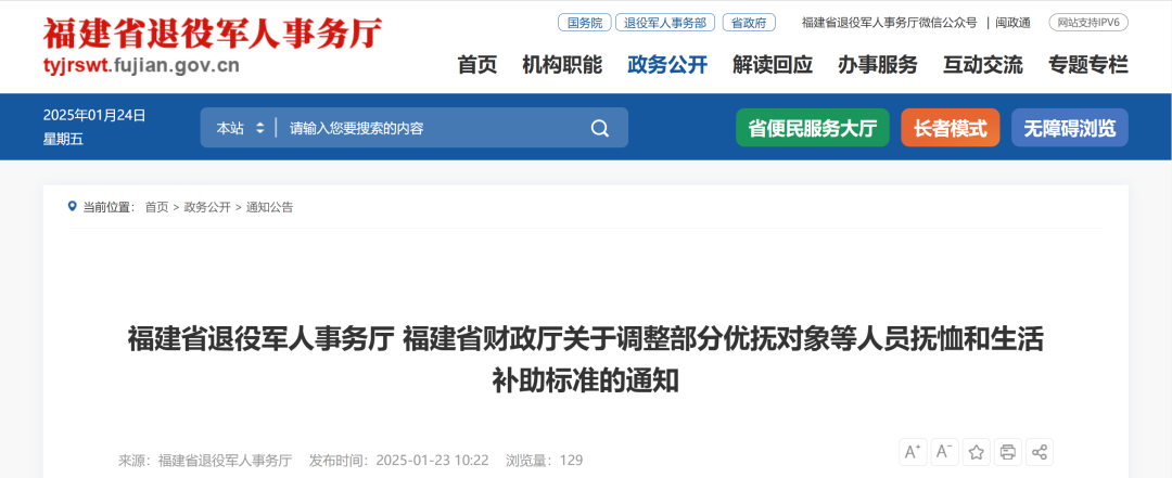 近日,福建省退役军人事务厅、福建省财政厅发布通知,调整部分优抚对象等人员抚恤和生活补助标准,来看详情——