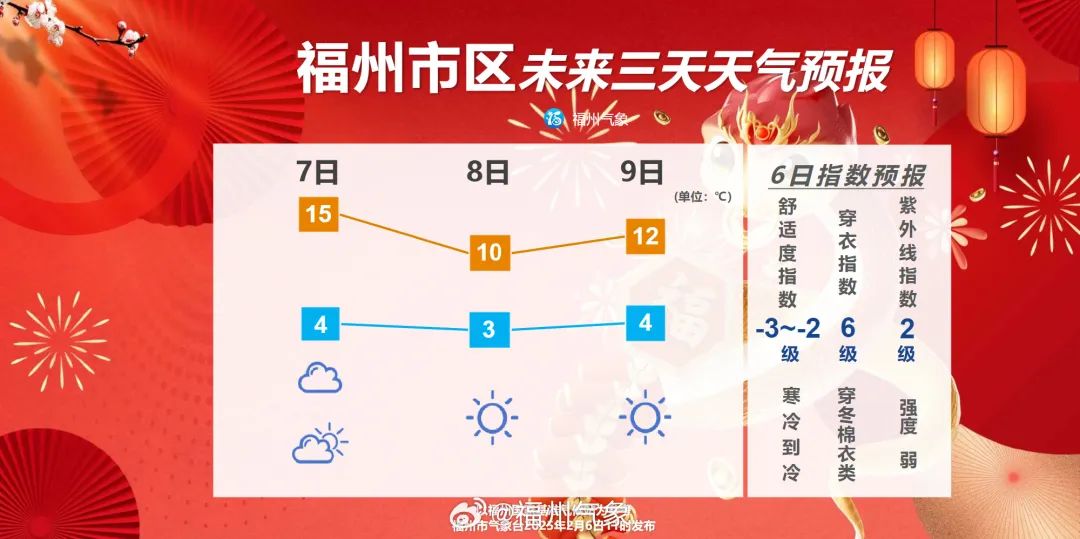 “不怕六九晴,就怕六九阴”,目前,福州已进入“六九”,受冷空气影响,8日至10日福州气温较低,最冷出现在9日早晨,预计将是蛇年以来最低温度,福州预计将有霜或霜冻,雾凇景观不确定。11日起,福州气温将有所回升。