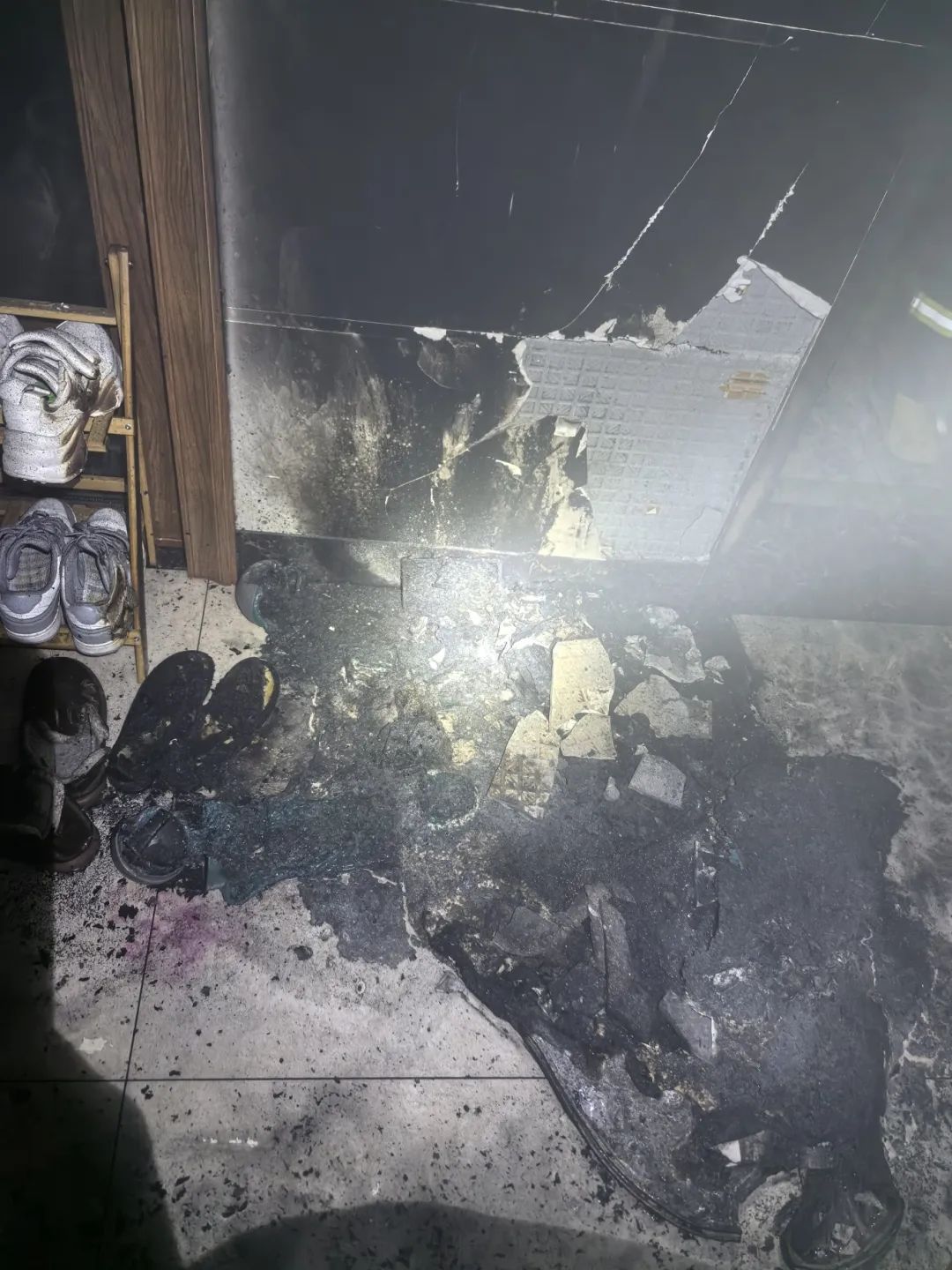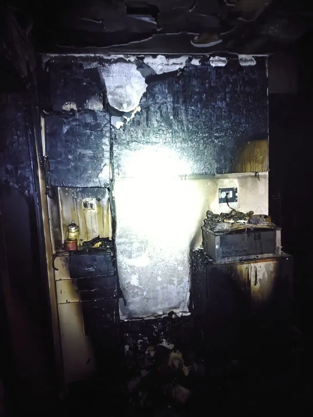 当时,被困的李女士和家人在睡梦中惊醒,卧室外传来一阵噼里啪啦声,她赶忙开门查看,发现入户门附近的佛龛起火了,明火堵住了向外的逃生通道,浓烟充斥整个室内空间。