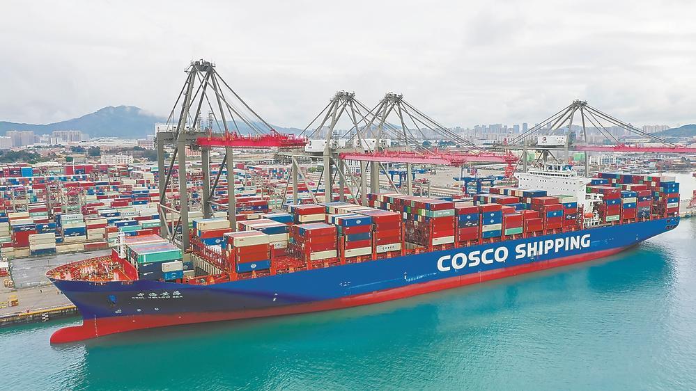 储能集装箱搭乘“中海黄海”轮前往美国洛杉矶。林梓健 摄
