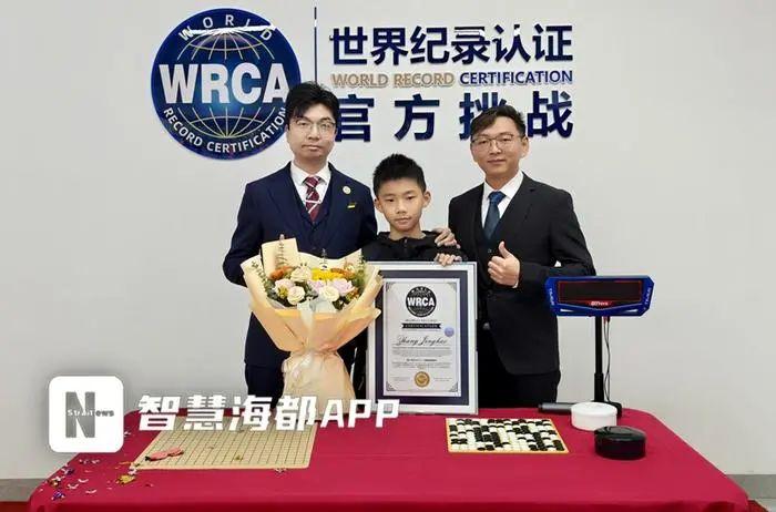 4分18.321秒!当10岁的张景昊双手拍下计时器的那一瞬间,全场沸腾了!13×13随机围棋排列记忆新的世界纪录诞生了!这可比原来纪录缩短了一半记忆时间。而张景昊也是该赛事世界纪录保持者中年纪最小的一位。