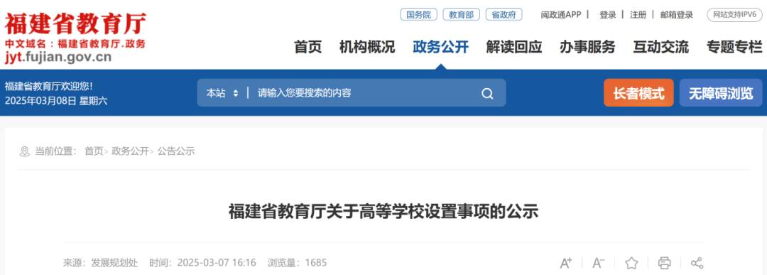 福建省教育厅发布公示
