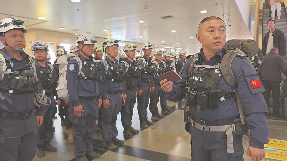 29日,厦门市曙光救援队队员抵达厦门高崎国际机场准备飞往缅甸。记者 何祖谋 摄