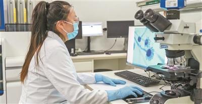 天津市肿瘤医院空港医院医务人员在化验样本。资料图片