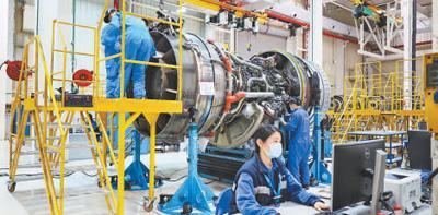 福建自贸试验区厦门片区,航空维修基地的工程师在进行发动机维修作业。资料图片