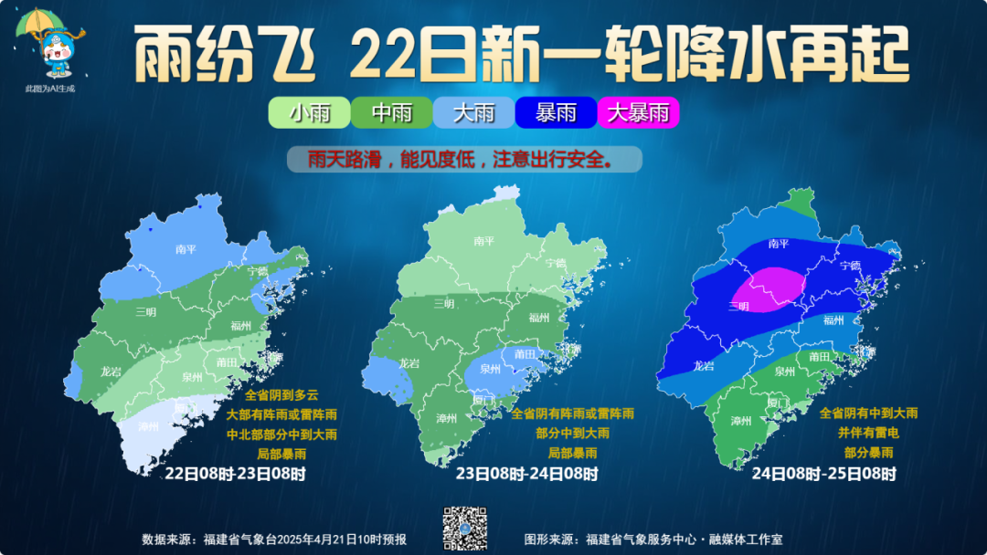 本周福建省降水较为频繁,经过今天(21日)的短暂停歇,22日起新一轮降水再起。
