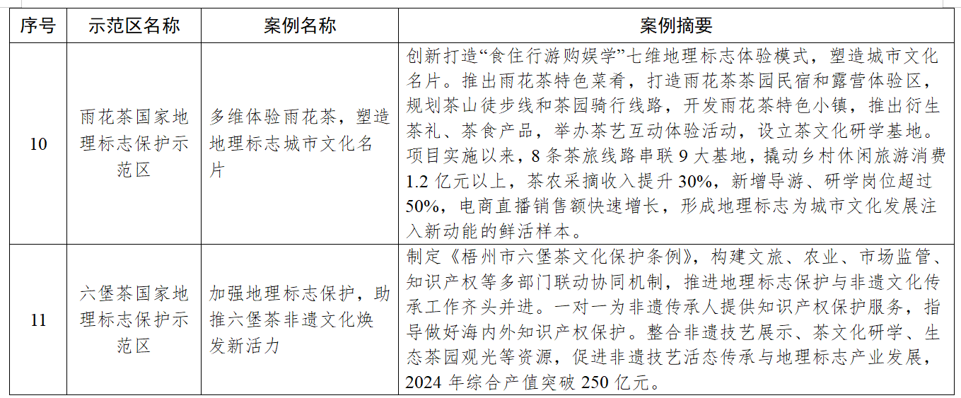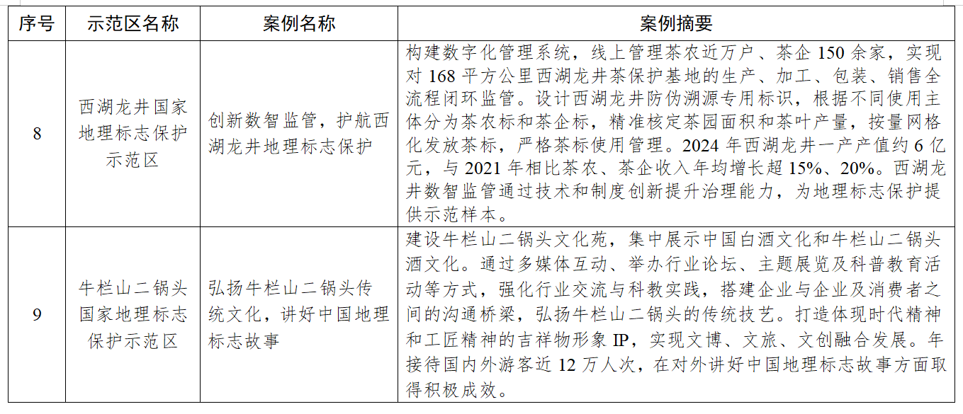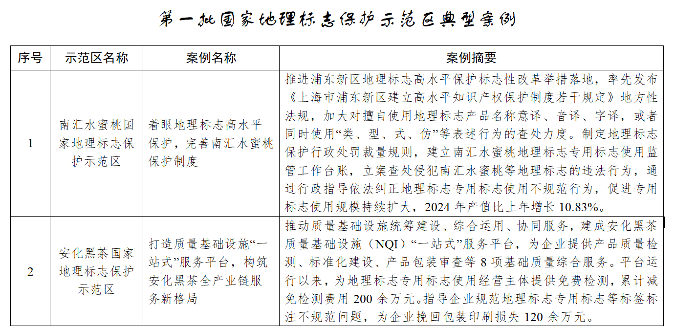 为推进国家地理标志保护示范区建设,充分发挥示范创建引领作用,进一步探索形成地理标志保护服务区域经济高质量发展的新路径。按照《国家知识产权局办公室关于征集国家地理标志产品保护示范区典型案例的通知》(国知办函保字〔2024〕884号),经组织申报、地方推荐、专家评审、综合评审等环节,确定了12个创新性强、成效较为突出、具备复制推广价值的案例,作为第一批国家地理标志保护示范区典型案例。