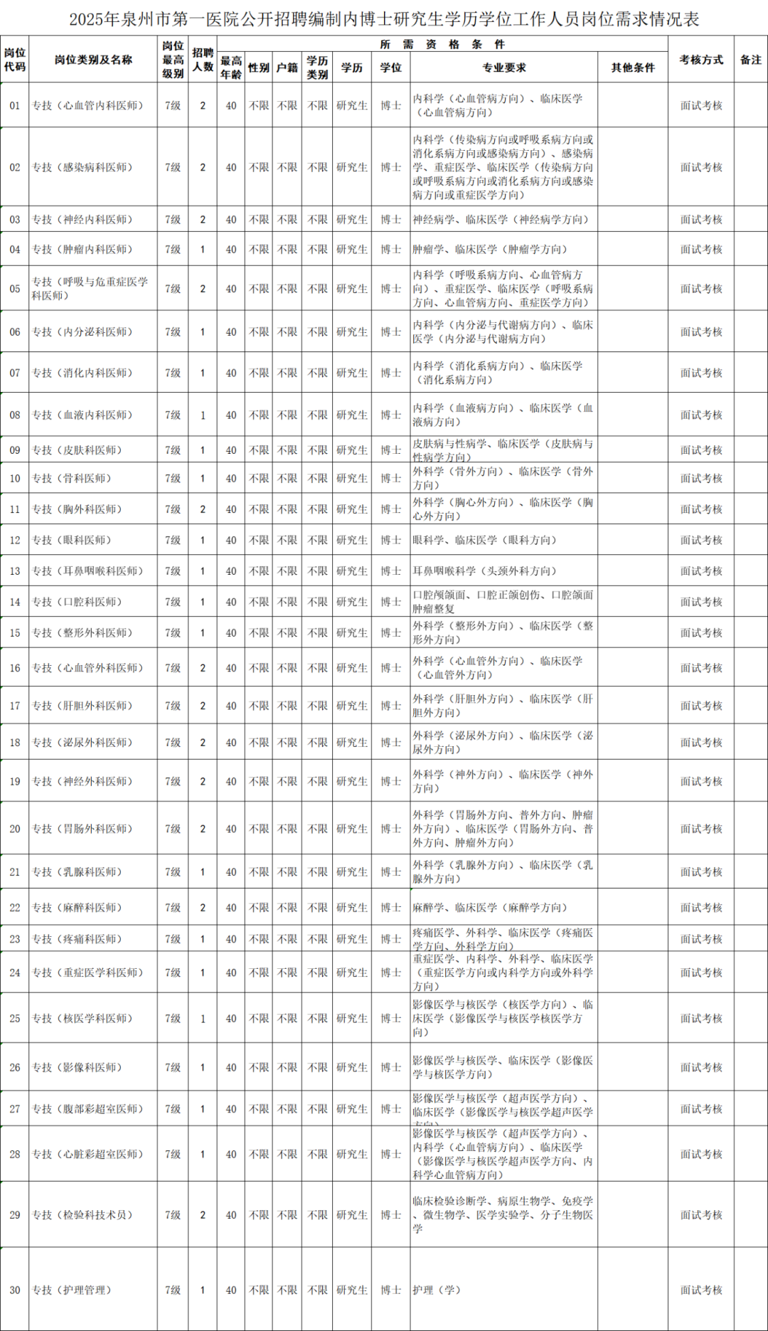 泉州市第一医院公开招聘编制内博士研究生学历学位工作人员42名