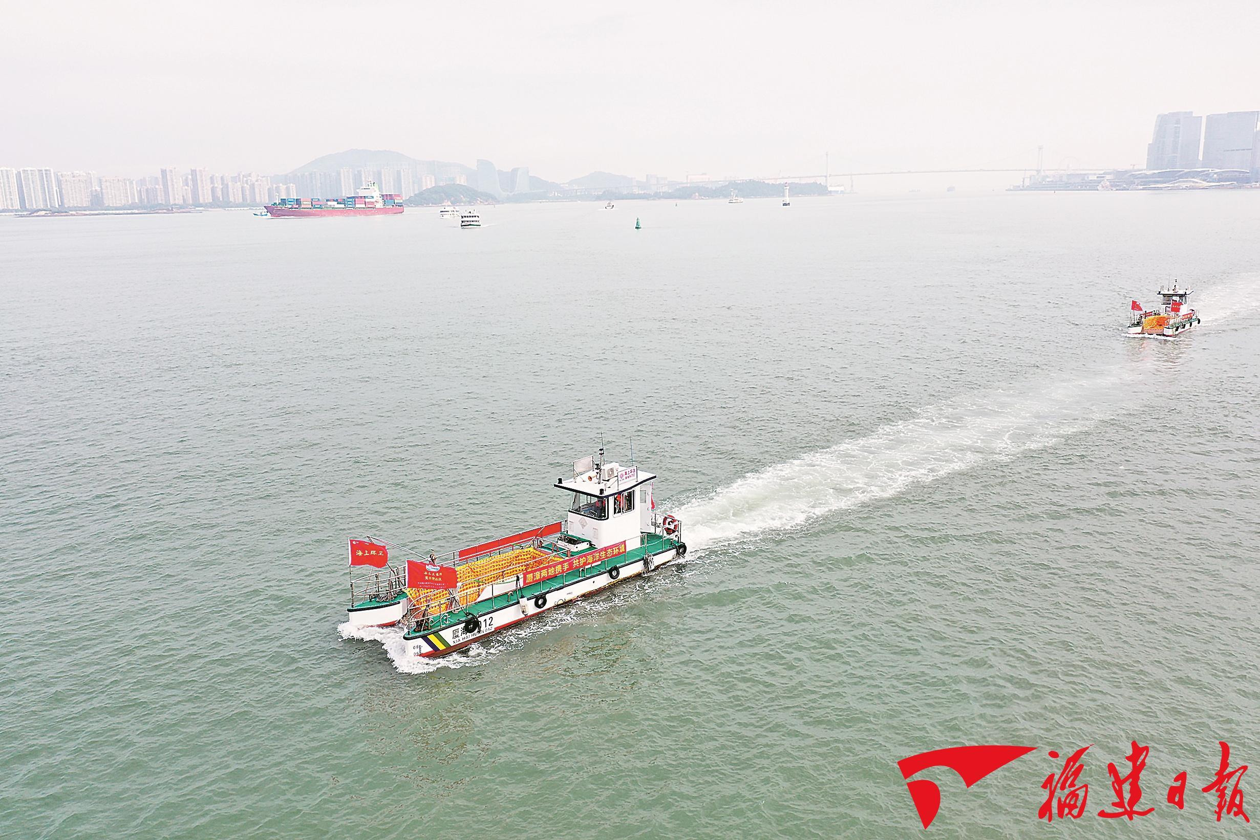 海上环卫机械清扫船驶往厦漳水域(九龙江入海口)开展保洁作业。张梁华 摄