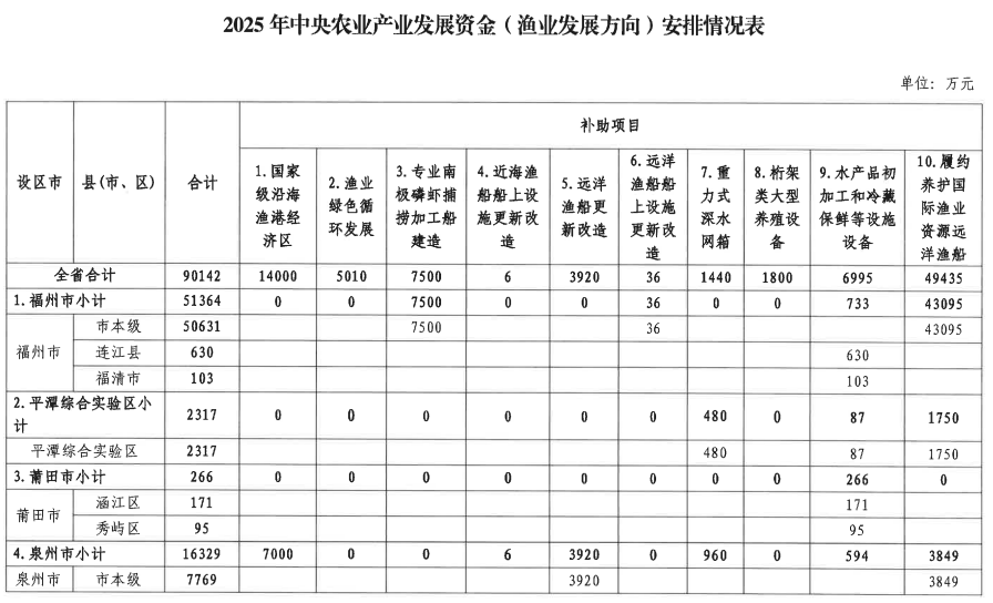福建省财政厅 福建省海洋与渔业局关于下达2025年中央农业产业发展资金(渔业发展方向)的通知