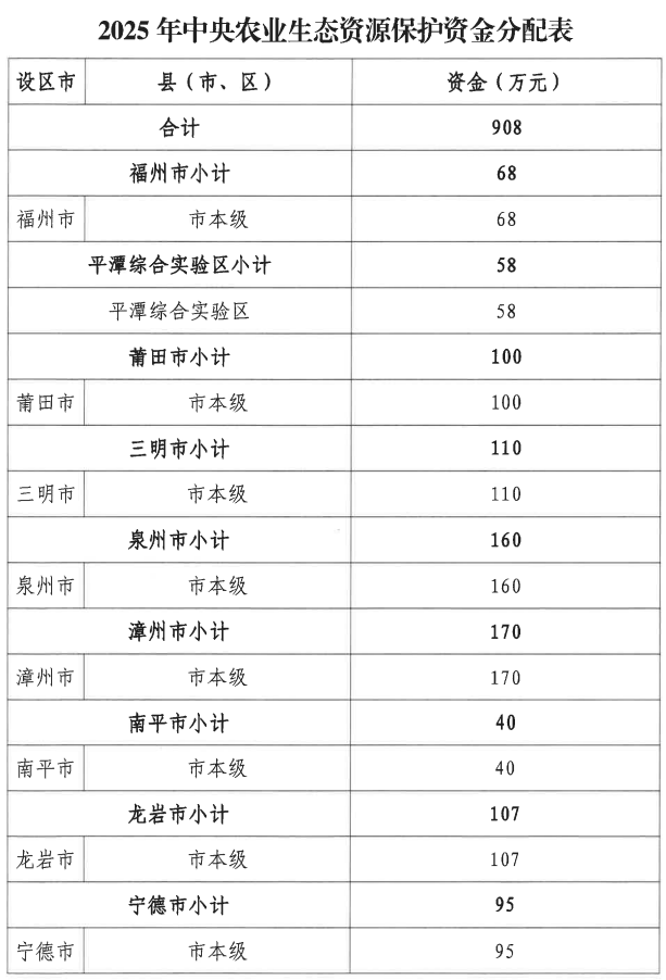 福建省财政厅 福建省海洋与渔业局关于下达2025年中央农业生态资源保护资金的通知