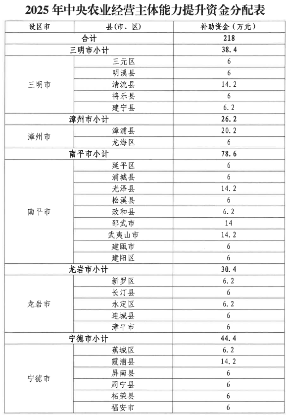 福建省财政厅 福建省海洋与渔业局关于下达2025年中央农业经营主体能力提升资金的通知