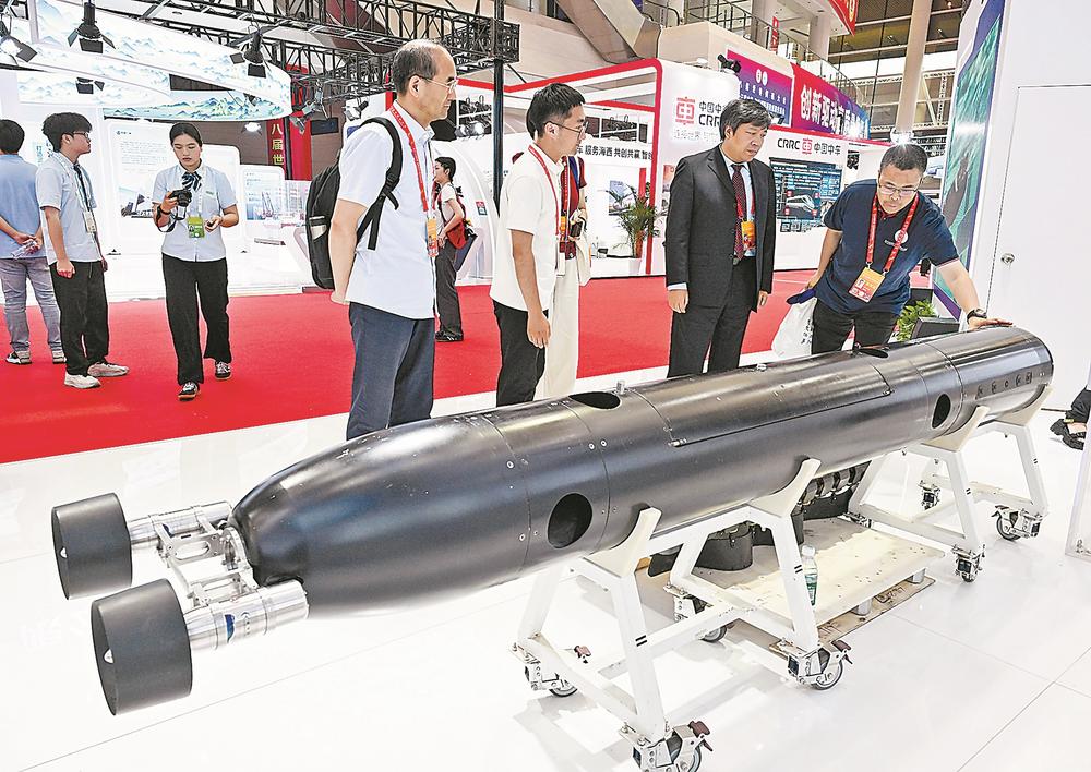“海创会”展区内,工作人员为观众介绍水下多物理场智能探测制导系统。该系统将实现水下多物理场信息的表征和反演,对提高我国海洋装备智能化水平有重大意义。记者 游庆辉 摄