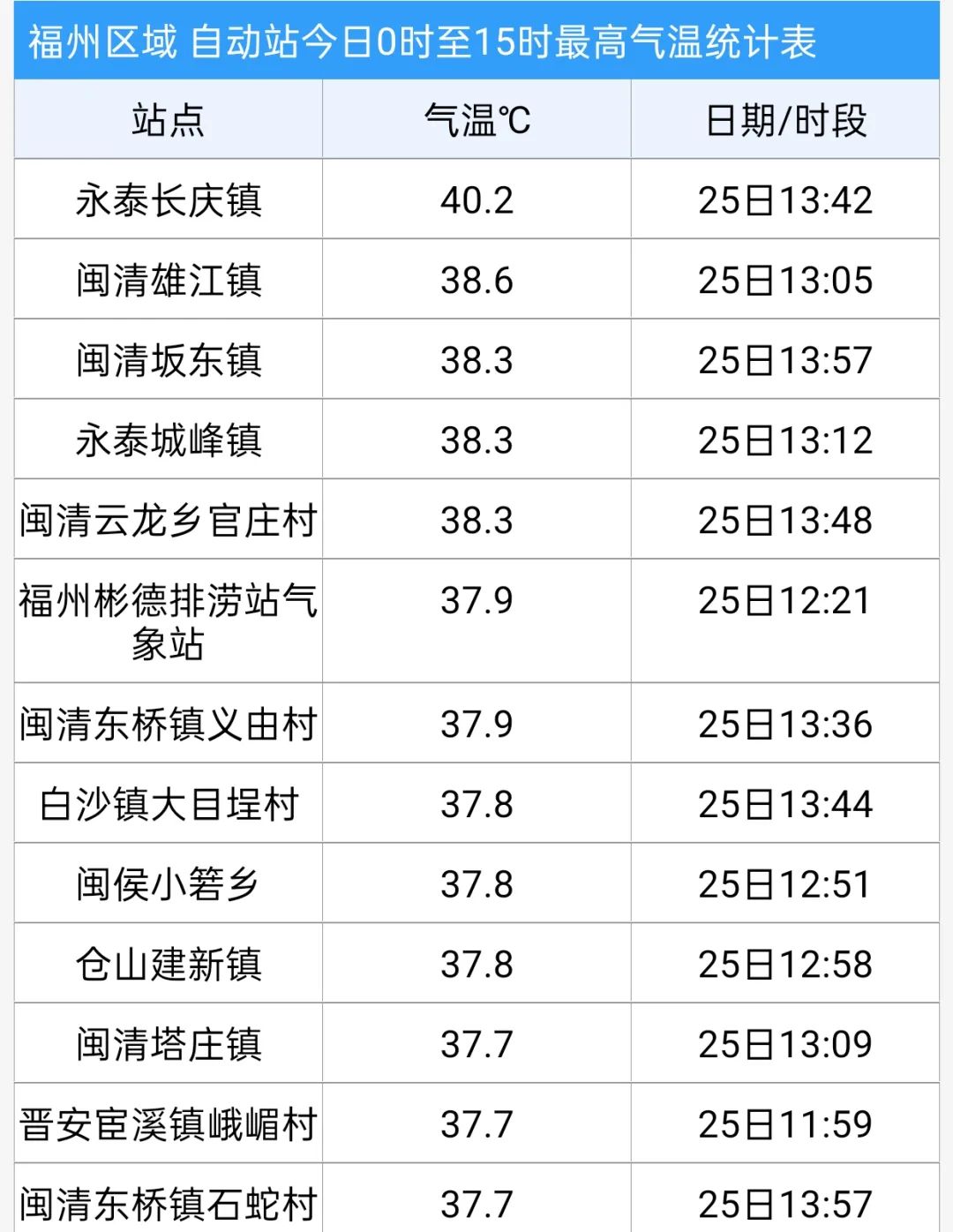 福州这里测得40.2℃