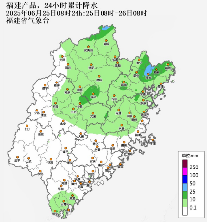 25日全省多云,中北部地区和南部沿海地区有阵雨或雷阵雨,有分散性中雨,局部大雨到暴雨。