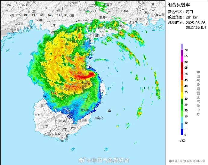 据中央气象台,南海热带低压已于6月26日上午10点前后在广东省湛江市徐闻县沿海再次登陆,登陆时强度为热带低压,中心附近最大风力有7级(15米/秒),中心最低气压998百帕。