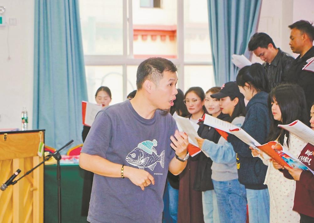 欧君阳老师为昌都教师合唱团进行排练。