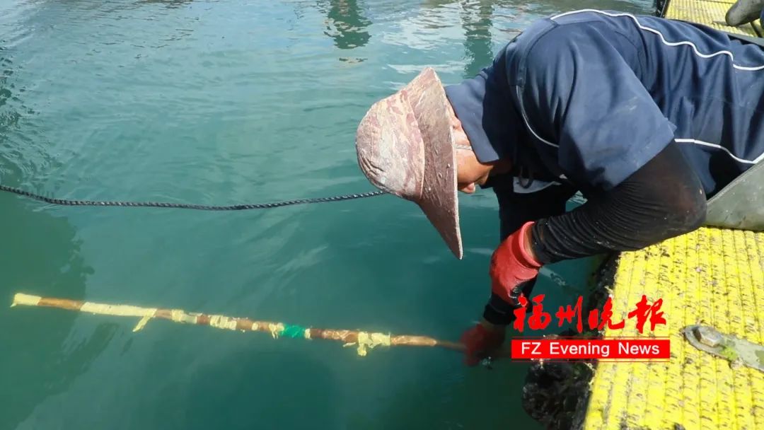 ▲7月5日上午,连江渔民正在加固海上养殖设施。