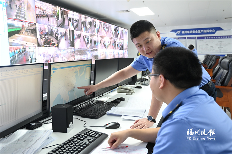 福州火车站安全生产指挥中心指派专人实时盯控台风走向。