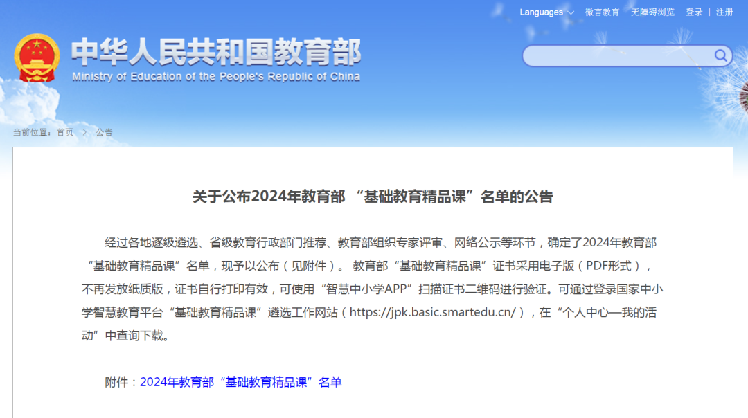 2024年教育部“基础教育精品课”名单