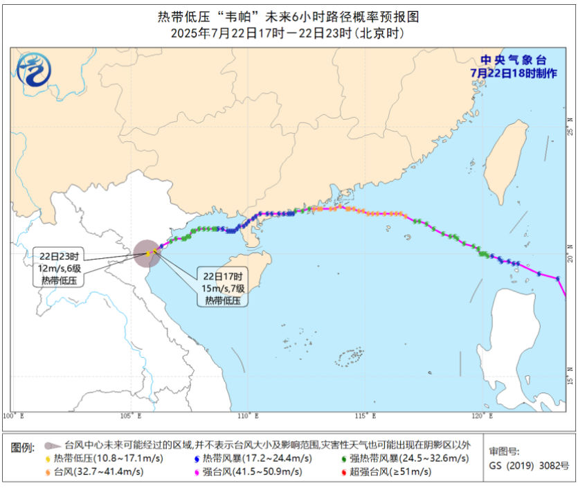 预计,“韦帕”将以每小时5公里左右的速度缓慢向偏西方向移动,强度继续减弱。由于“韦帕”已经在越南北部登陆并减弱为热带低压,因此中央气象台于7月22日18时解除台风蓝色预警。