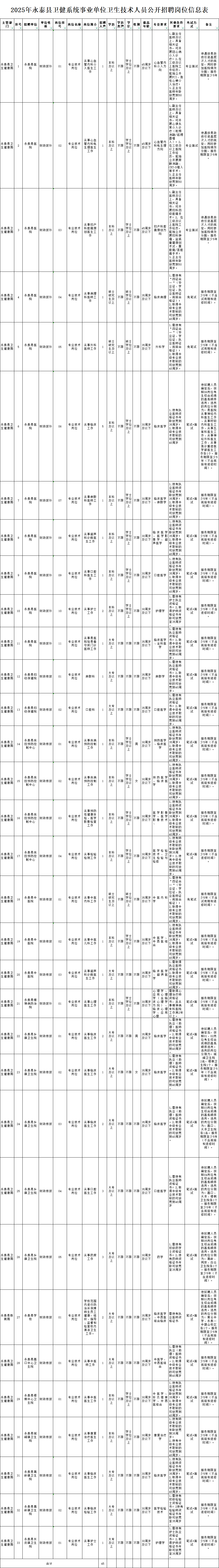 永泰县卫健系统事业单位招聘卫生技术人员45名