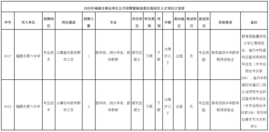 福鼎市招聘紧缺急需及高层次人才3名