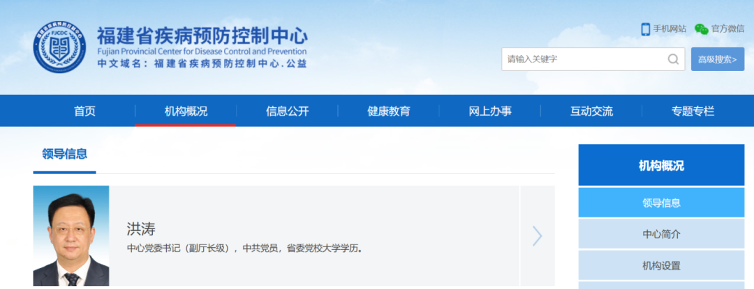 近日,福建省疾病预防控制中心官网更新显示,洪涛已任福建省疾病预防控制中心党委书记(副厅长级)。