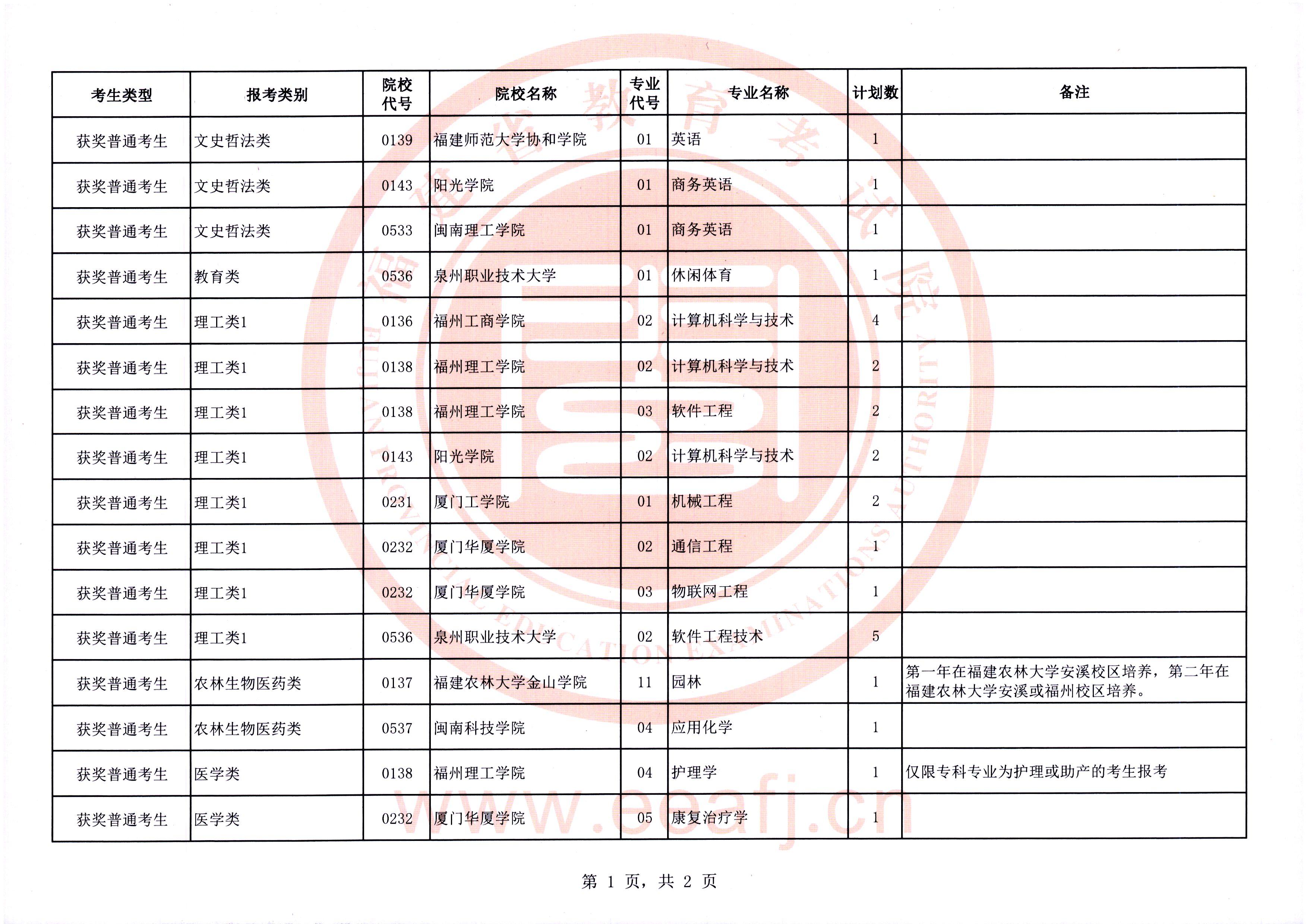 今年福建省专升本面向获奖普通考生仍有缺额计划须进行征求志愿(具体附后)。请考生在填报征求志愿时注意以下事项: