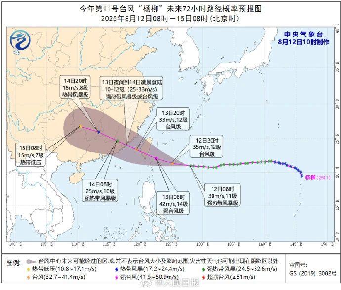 据气象部门预报,今年第11号台风“杨柳”将于8月13日中午前后登陆我国。受其影响,福建中南部、江西南部等地部分地区将有暴雨或大暴雨并伴有大风、强对流天气,局地有特大暴雨。