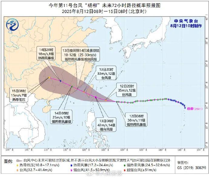 据气象部门预报,今年第11号台风“杨柳”将于8月13日中午前后登陆我国。受其影响,福建中南部、江西南部等地部分地区将有暴雨或大暴雨并伴有大风、强对流天气,局地有特大暴雨。