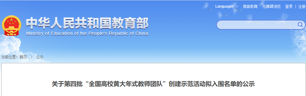 为深入贯彻落实习近平总书记对黄大年同志先进事迹的重要指示和给全国高校黄大年式教师团队代表的重要回信精神,大力弘扬黄大年同志“心有大我、至诚报国”的崇高品格,引导广大教师在加快建设教育强国的新征程中展现更大担当作为,根据《教育部关于开展第四批“全国高校黄大年式教师团队”创建活动的通知》(教师函〔2025〕2号)要求,经自主申报、逐级遴选、专家评审等环节严格把关,拟确定第四批“全国高校黄大年式教师团队”(见附件),现予以公示。