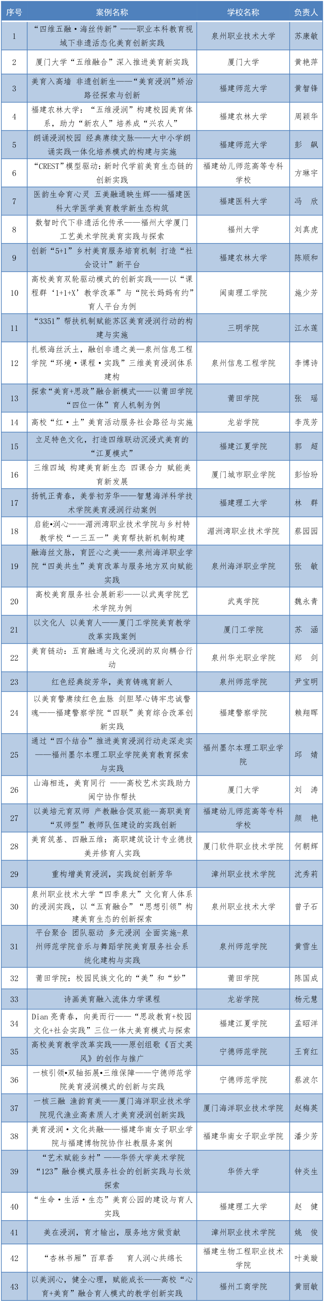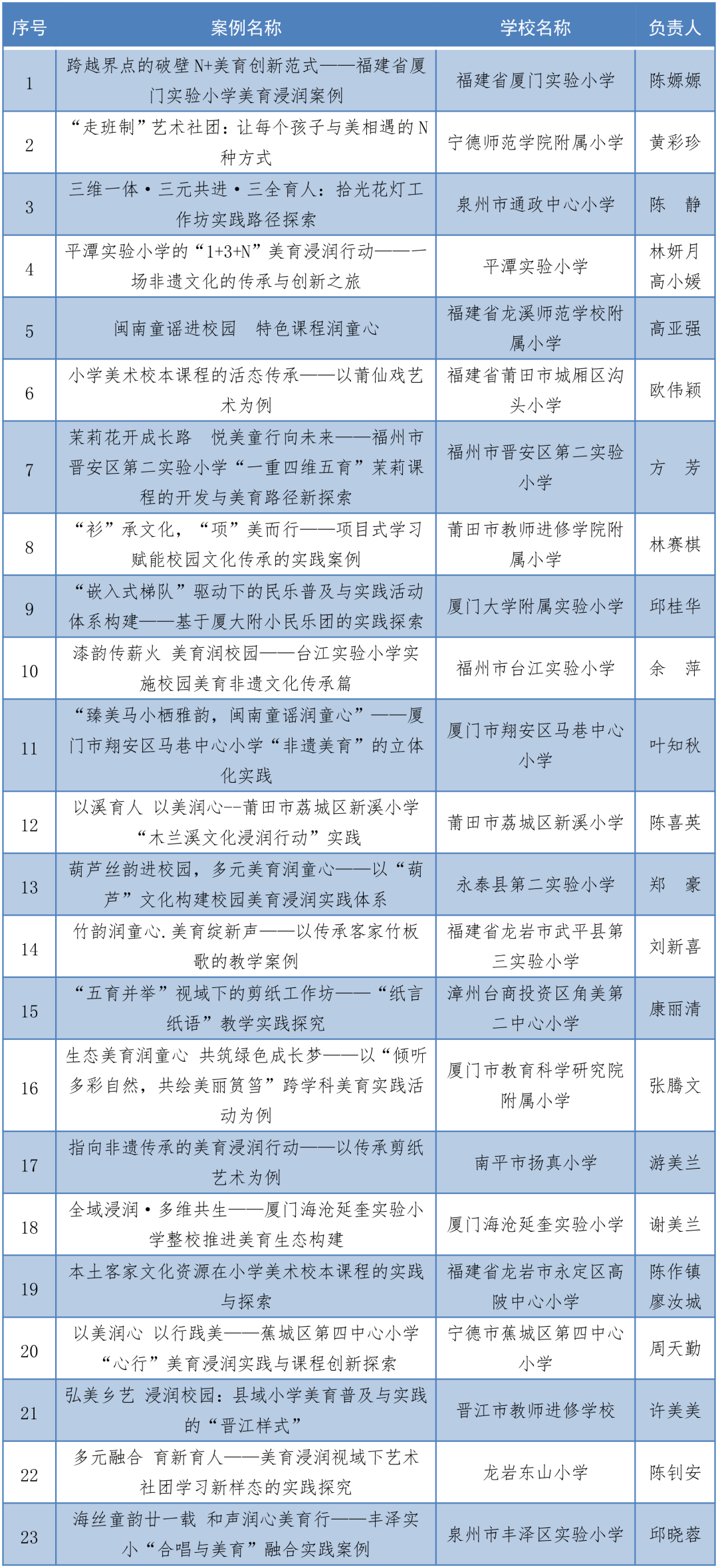 2025年福建省学校美育浸润行动优秀案例名单