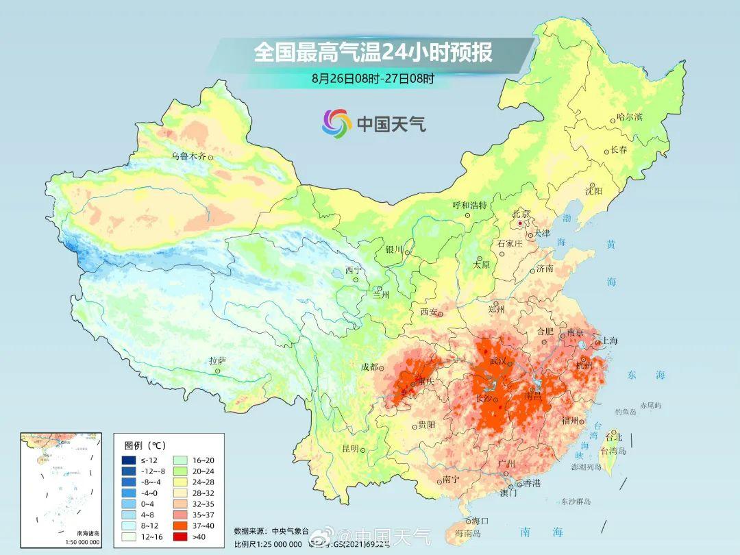 中央气象台8月26日继续发布高温黄色预警,预计8月26日白天福建大部等地有35℃~39℃高温天气。