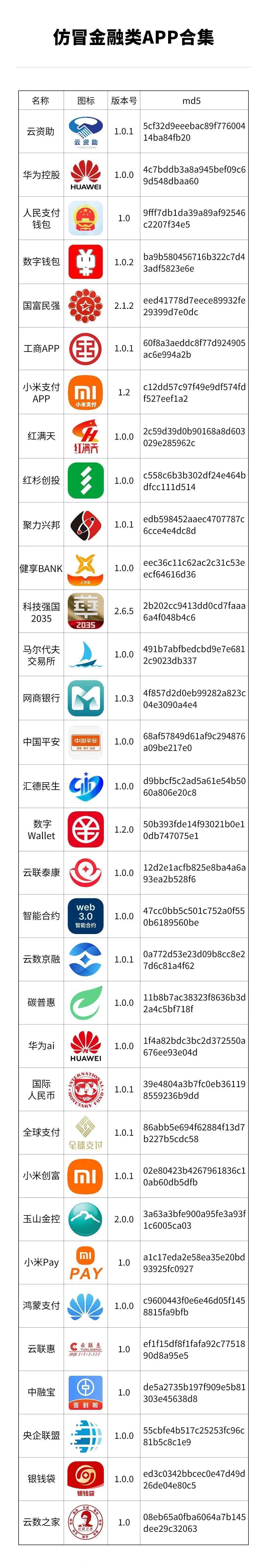 仿冒金融类APP不断翻新、形式多样,常以高度模仿正规平台的迷惑性外观进行伪装,布设诈骗陷阱。为切实保障公众财产安全,汇总近期高发的仿冒金融类APP合集,助力公众快速识破诈骗套路。