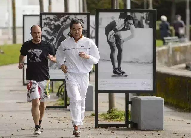 王毅曾在瑞士洛桑参加六国外长会议期间,穿着白色运动套装绕日内瓦湖慢跑。