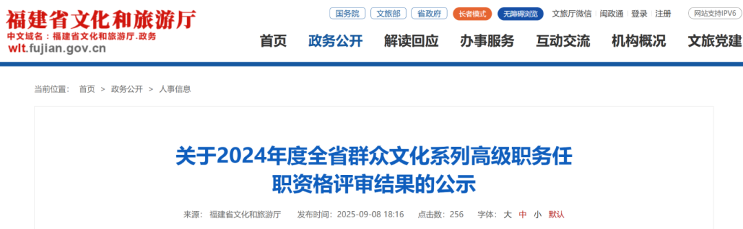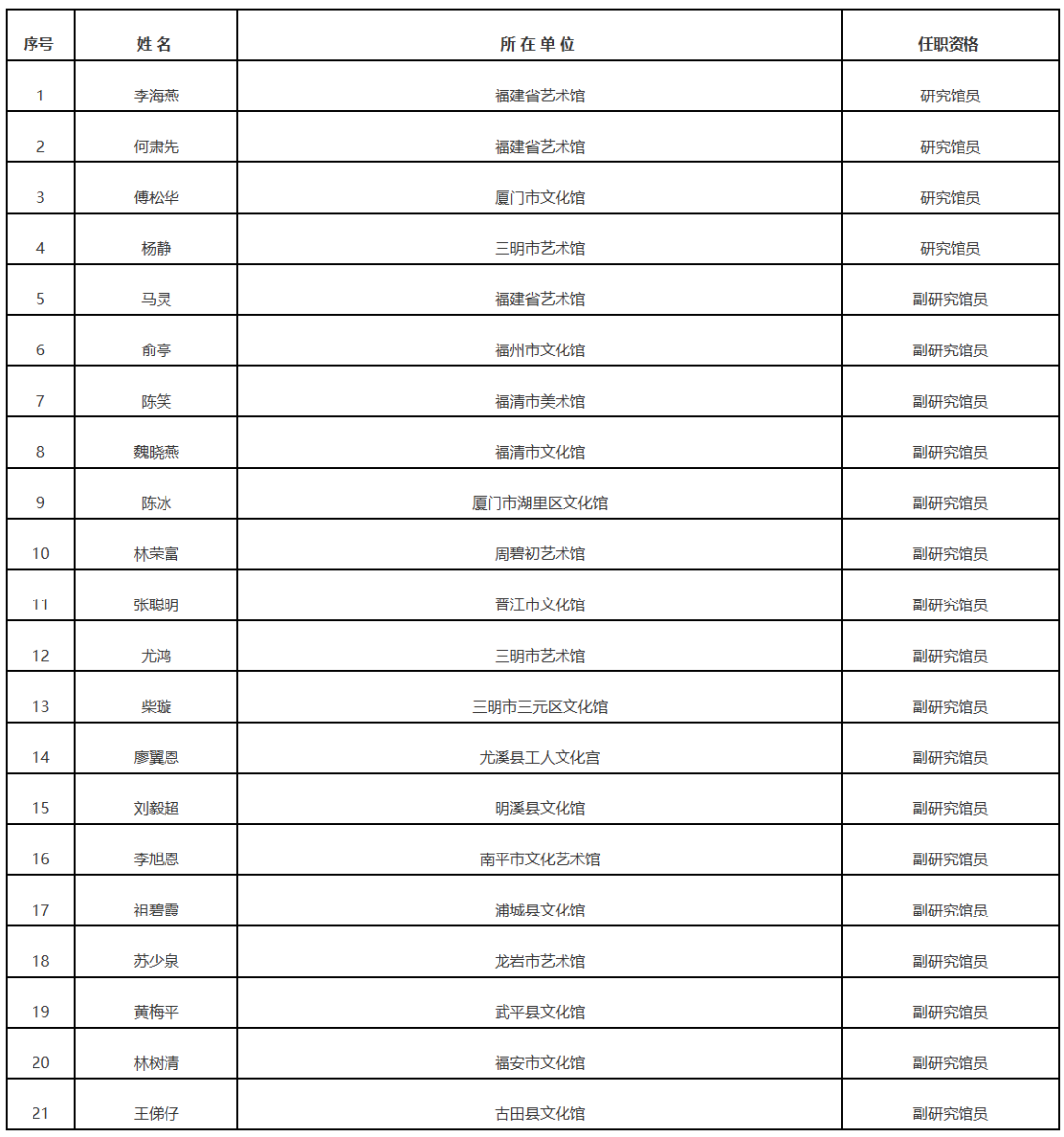 近日,福建省文化和旅游厅发布关于2024年度全省群众文化系列高级职务任职资格评审结果的公示,一起来看——