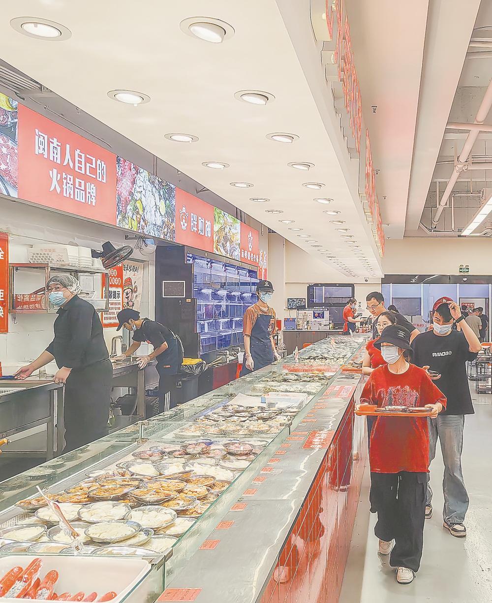 消费者在泉州胖财神万达店挑选食材。
