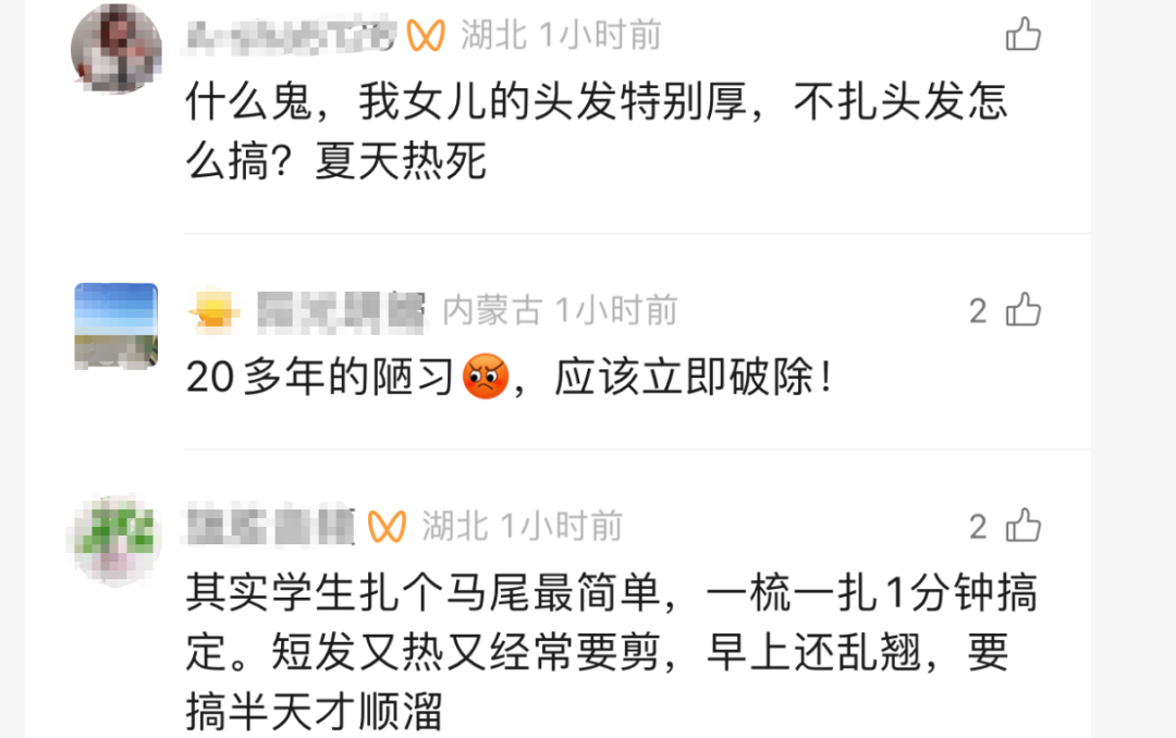17日,三明市教育局相关科室的工作人员表示,各校规章制度不同,目前已与三明一中沟通,建议学校调整方式方法,多考虑学生情况,“不要那么苛刻”。据其透露,学校已表态将收集意见建议,探讨更合适的女生短发管理方案。